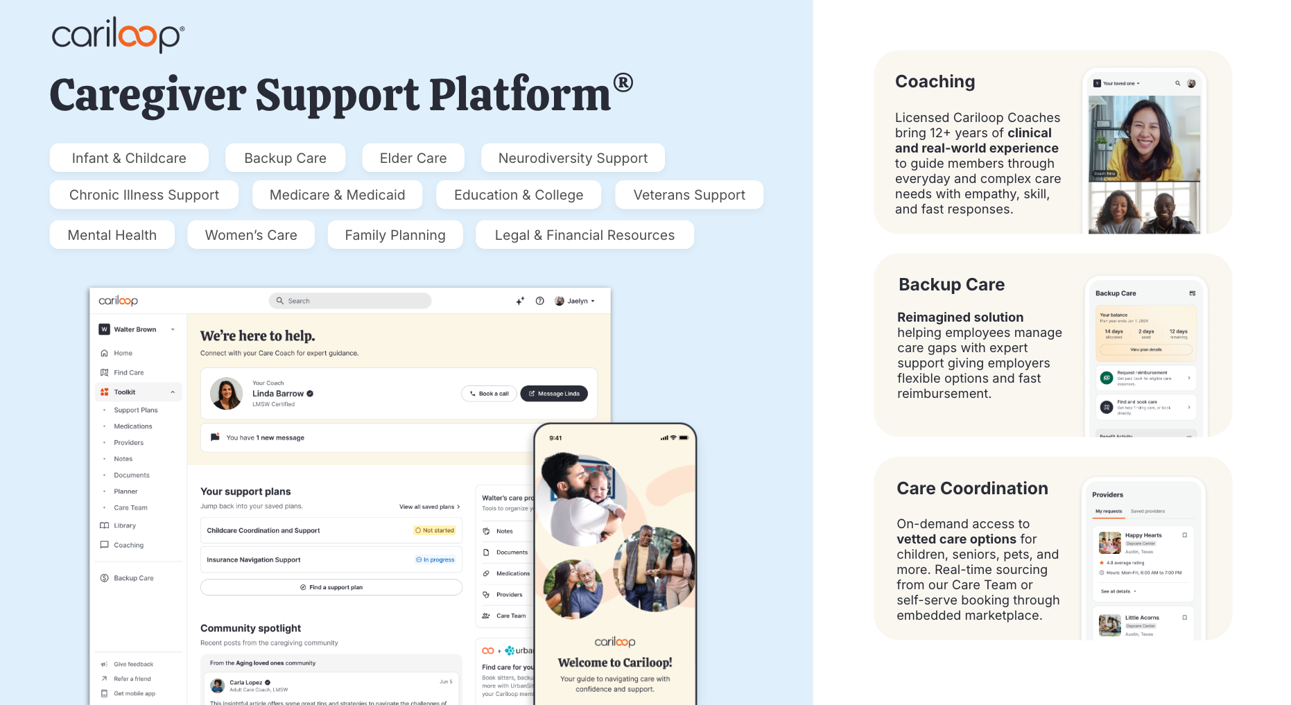 Cariloop is the go-to solution for employer-sponsored caregiver support, blending professional coaching and guidance with an intuitive Caregiver Support Platform, and a caregiver network. We empower working families to navigate caregiving challenges by connecting them to experienced Cariloop Coaches and tailored resources.